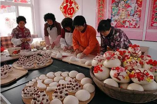 腊月二十三后,家家户户要蒸花馍。大体上分为敬神和走亲戚用的两种类型。前者庄重,后者花梢。“一家蒸花馍,四邻来帮忙”。