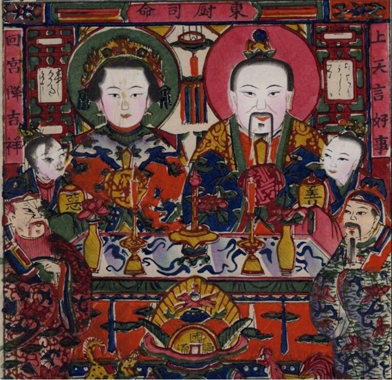 现在民间供奉的东厨司命定福灶君,是一对老夫妇并坐,或是一男两女并坐,即灶君和灶君夫人的画像。